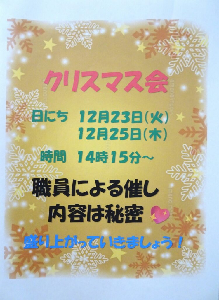 12月23日と25日に、職員によるクリスマス会を開催しました!