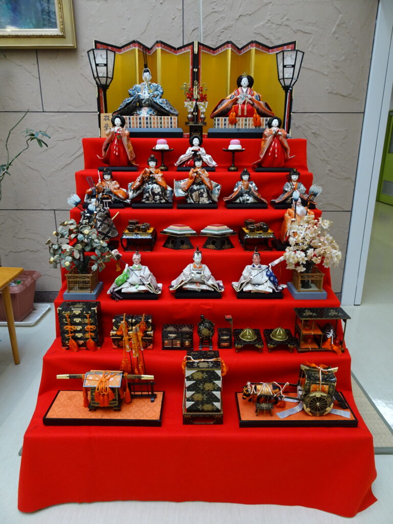 今年も湘南の丘吹き抜けロビーに、七段飾りのひな人形を飾りました。